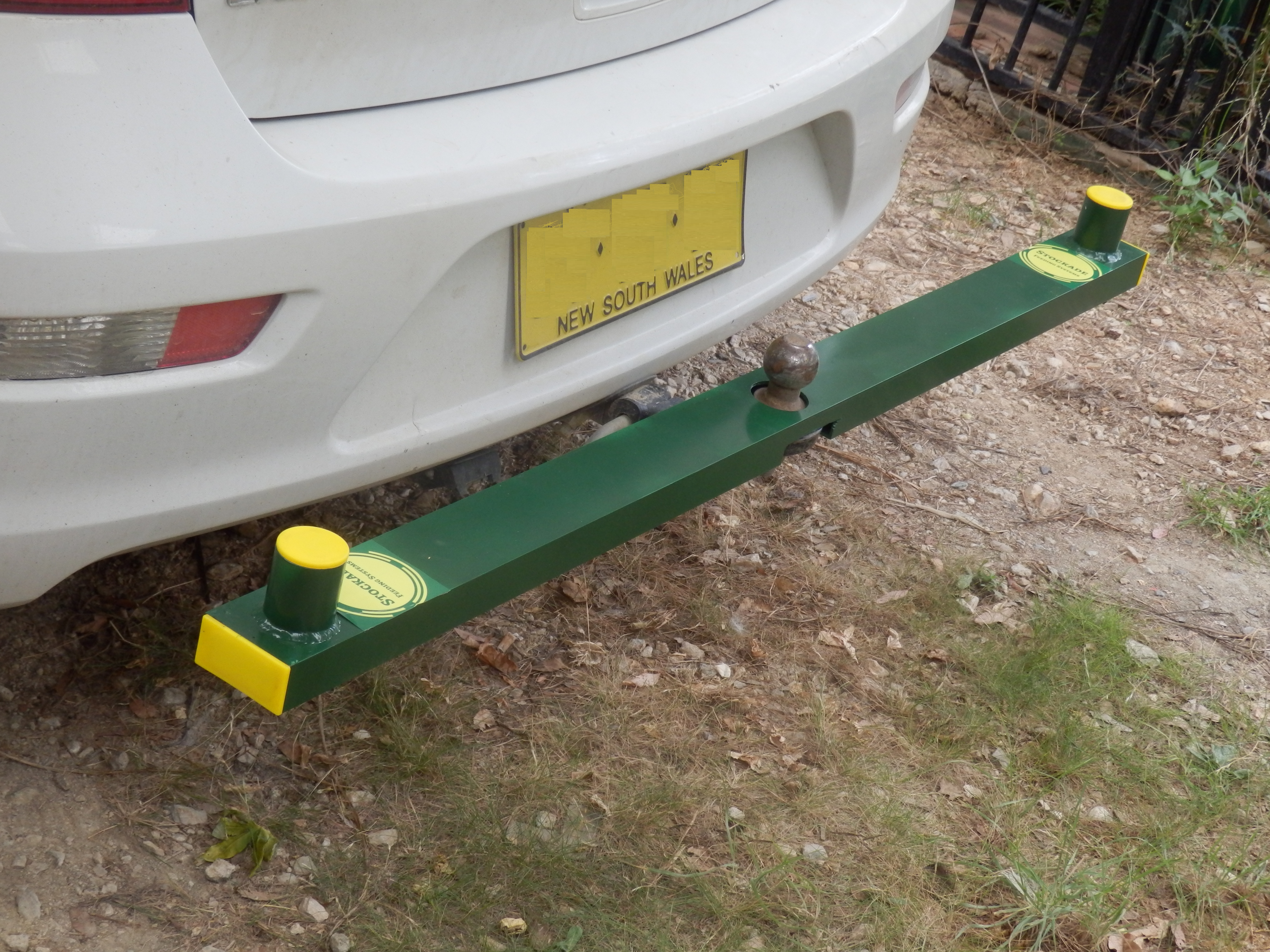 The Big Tow and Little Tow, together the Stockade Towing System, can tow up to three Stockade Hay Caddies, or wheelie bins, from any vehicle with a tow ball or even a ride-on mower. Simply drop the Big Tow over a tow ball and then place the Caddies, or wheelie bins, over the two raised points and the tow ball, and off you go. The Little Tow can be latched onto a ride-on to tow one Caddy, or wheelie bin, or place the Big Tow on the Little Tow, which is the Stockade Towing System, to create a raised point to tow three at once.